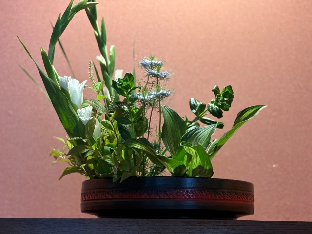 妻が若い時代から続けている特技。子どもが小さかった頃は一時中断していたものの、子どもの手が少し離れた頃から再開したのです。家を建て替えるときに建築士の方が妻の特技を知り、「じゃあ、玄関にお花を飾れるように飾り棚を作りましょう」ということで、玄関に飾り棚が誕生しました。それ以来、お花の先生のところで習ってきた後は、新しい生花が飾られています。これからは気温が高くなるとお花の持ちが悪くなってきますが、お花が生けられていると、季節が感じられ、何だか華やかな気分になって気持ちが良いものです。