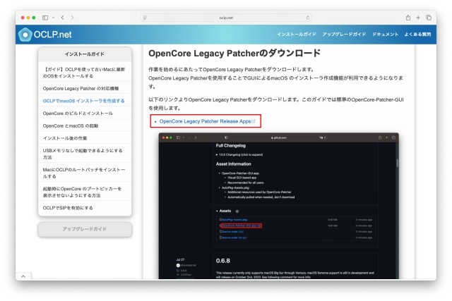 OCLPを使えることがわかったので、OCLPを下記サイトからダウンロードし、インストーラーを作成します。