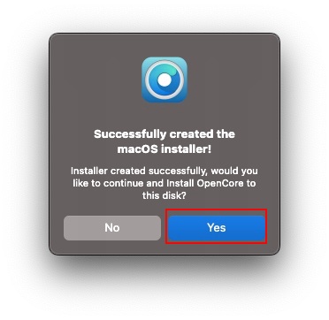 USBメモリへのインストールが終了すると次のような画面が表示されますので、続けてMBA11にインストールしてしまいましょう。Yes をクリックします。