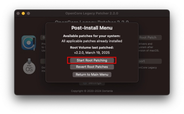 Start Root patching をクリックします。