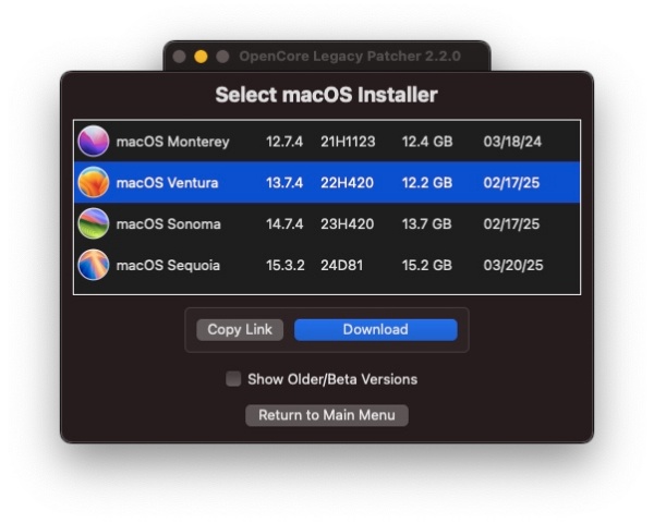 4 OpenCore Legacy Patcherをダウンロードする