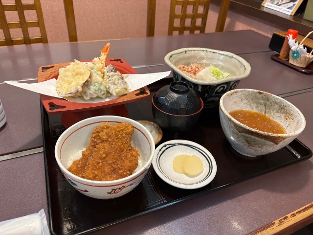 席についてメニューを見ると、おろしそばとソースカツ丼と天麩羅のセットがあるではありませんか。もうこれ一択。味もとっても素敵で、見かけ以上に量もありました。