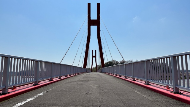 北潟湖を象徴する代表的な場所といえば、なんといっても「あいりすぶりっじ」。てっきりカタカナで書くのかなと思っていたのですが、橋の袂にはひらがなで書かれていました。きっとひらがなで書くのが正式名称なのでしょう。どちらで書いても、北潟湖上に架かる赤い吊り橋は、とても堂々と、それでいて美しく見えます。この吊り橋は、歩いて渡ったり、自転車で走ることもできます。この「あいりすぶりっじ」を含む公園内の道路は、サイクリングロードにもなっているので、車も入ってきませんし、小さなお子さんでも安心して自転車に乗ることができます。でも、最近は、自転車で歩行者に怪我を負わせる事故も増えているようなので、十分に気をつけたいものです。