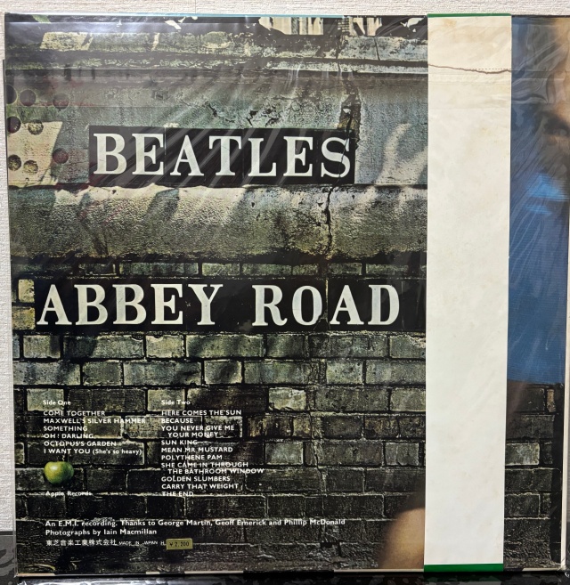 そんな私のコレクション?の中に有名な「アビイ・ロード」があるのですが、一つはみなさんもよく目にするタイプで、ビートルズのメンバーが横断歩道を右に向かって歩いている写真のジャケット。丸帯がついているし、裏面には東芝音楽工業株式会社と印刷されているので日本版なのでしょう。これは、誰がどうみても「ビートルズのアビイ・ロード」に間違いありません。